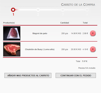 Una vez tenemos en nuestro carrito los productos deseados pulsaremos el botón de "Continuar con el pedido".