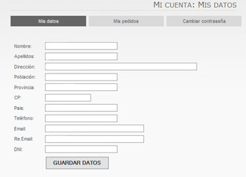 Si es la primera compra que realizamos en la Tienda Virtual deberemos registrarnos cumplimentando el formulario de datos y una vez guardados los datos se enviará por correo electrónico a la cuenta de correo facilitada los datos de acceso que permitirán realizar compra posteriores mediante la introducción de dichos datos de acceso.